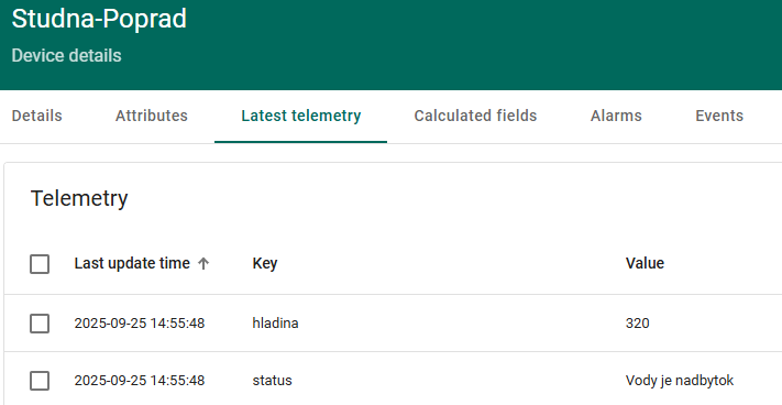 When outputting data to the ThingsBoard dashboard, you can use variables directly, or you can also use postprocessing of the variable, where you can adjust the value with a separate script. In this case, for the well filling level, the measured value / well depth (x100) is calculated, which gives us a percentage expression of the well filling.